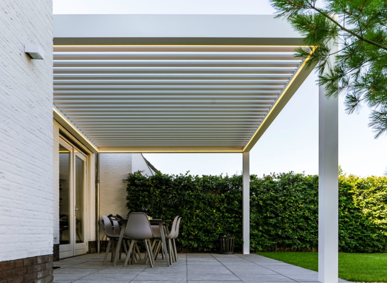 Een lamellendak is de perfecte combinatie van design, technologie en comfort. Met verstelbare lamellen bepaal je zelf de hoeveelheid zonlicht, schaduw en ventilatie. Of je nu wilt genieten van de zon, verkoeling zoekt op warme dagen of beschut wilt zitten bij regen: een lamellendak past zich moeiteloos aan jouw wensen aan.