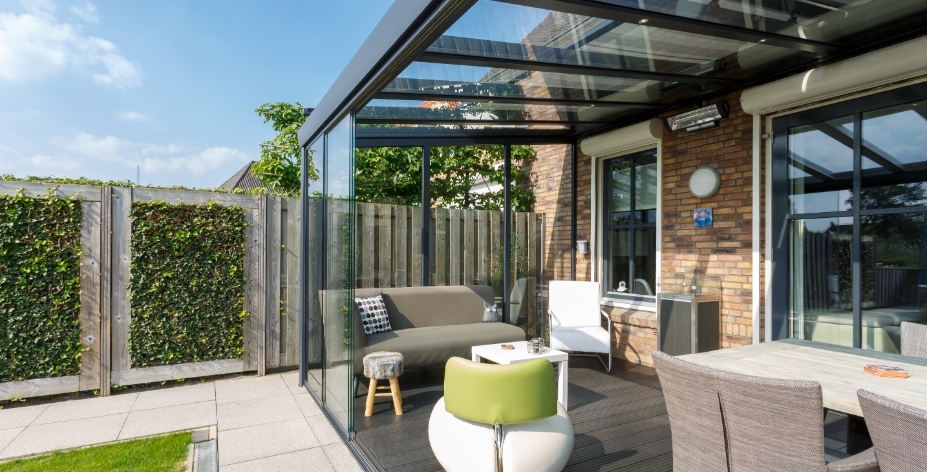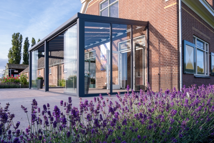 Naast de standaard open uitvoering zijn ze ook af te werken met glazen schuifwanden voor een moderne, lichte uitstraling en optimale bescherming tegen wind en regen. Wilt u een warmere, natuurlijke sfeer? Dan zijn houten schuifpanelen de perfecte keuze.
